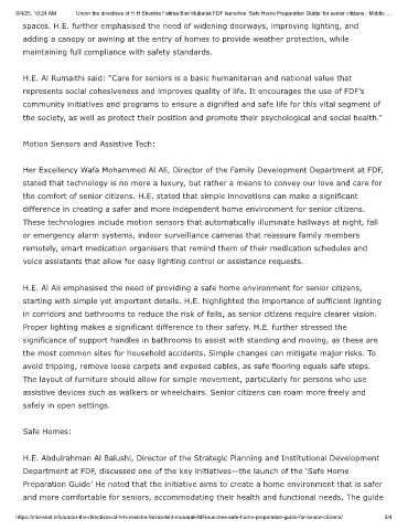 6/4/25, 10:24 AM Under the directives of H.H Sheikha Fatima Bint Mubarak FDF launches ‘Safe Home Preparation Guide’ for senior citizens - Middle …