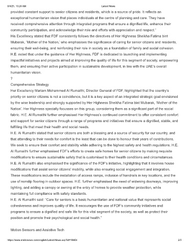 Al Rumaithi further emphasised FDF’s efforts to create safe homes for senior citizens by making requisite