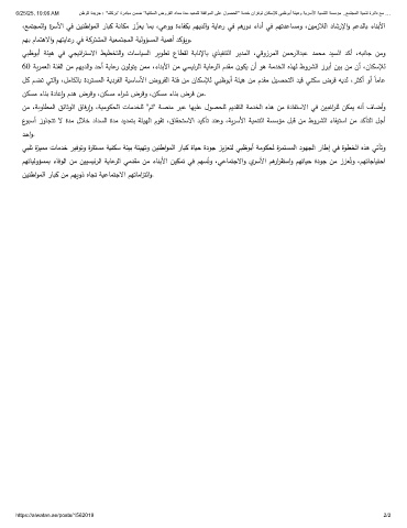 ﻲبﻠﺗ ةزيمﻣ تﺎﻣدﺧ ريﻓوﺗو ةرﻘتسﻣ ﺔينكﺳ ﺔئيﺑ ﺔئيﻬﺗو نينطاومﻟا رﺎبك ةﺎيﺣ ةدوﺟ زيزﻌتﻟ ﻲبظوﺑأ ﺔﻣوكحﻟ ةرمتسمﻟا دوﻬجﻟا رﺎطإ ﻲﻓ ةوطخﻟا ﻩذﻫ ﻲﺗﺄﺗو