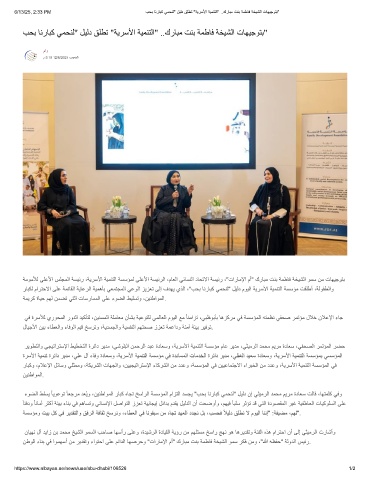 ﻲﻓ ةرﺳﻸﻟ يروﺣﻣﻟا رودﻟا دﯾﻛﺄﺗﻟ ،نﯾﻧﺳﻣﻟا ﺔﻠﻣﺎﻌﻣ نﺄﺷﺑ ﺔﯾﻋوﺗﻠﻟ ﻲﻣﻟﺎﻌﻟا موﯾﻟا ﻊﻣ ً ﺎﻧﻣازﺗ ،ﻲﺑظوﺑﺄﺑ ﺎھزﻛرﻣ ﻲﻓ ﺔﺳﺳؤﻣﻟا ﮫﺗﻣظﻧ ﻲﻔﺣﺻ رﻣﺗؤﻣ لﻼﺧ نﻼﻋﻹا ءﺎﺟ