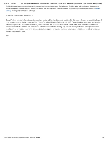 8/14/25, 11:06 AM Red Hat OpenShift Named a Leader for Third Consecutive Year in 2025 Gartner® Magic Quadrant™ for Container Management | …
