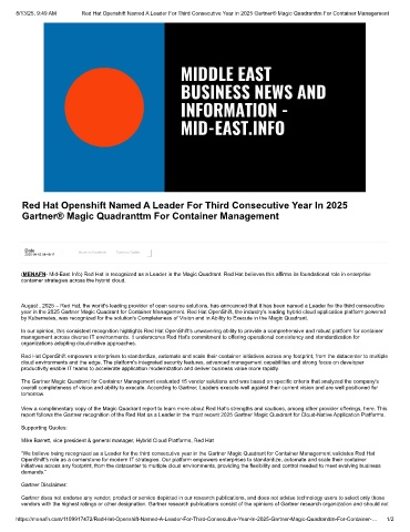 https://menafn.com/1109917472/Red-Hat-Openshift-Named-A-Leader-For-Third-Consecutive-Year-In-2025-Gartner-Magic-Quadranttm-For-Container-… 1/2