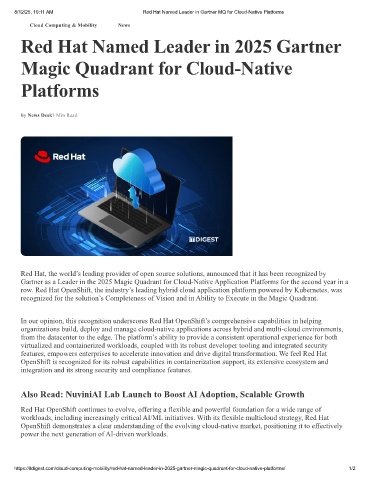 https://itdigest.com/cloud-computing-mobility/red-hat-named-leader-in-2025-gartner-magic-quadrant-for-cloud-native-platforms/ 1/2