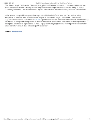 https://itdigest.com/cloud-computing-mobility/red-hat-named-leader-in-2025-gartner-magic-quadrant-for-cloud-native-platforms/ 2/2