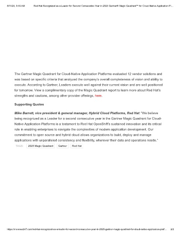 8/11/25, 9:46 AM Red Hat Recognized as a Leader for Second Consecutive Year in 2025 Gartner® Magic Quadrant™ for Cloud-Native Application Pl…