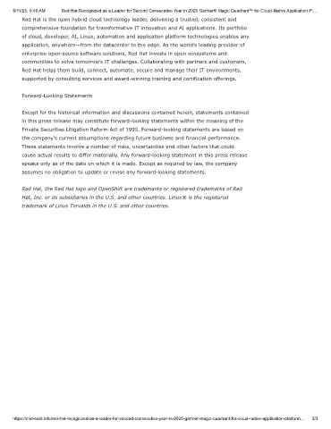8/11/25, 9:46 AM Red Hat Recognized as a Leader for Second Consecutive Year in 2025 Gartner® Magic Quadrant™ for Cloud-Native Application Pl…