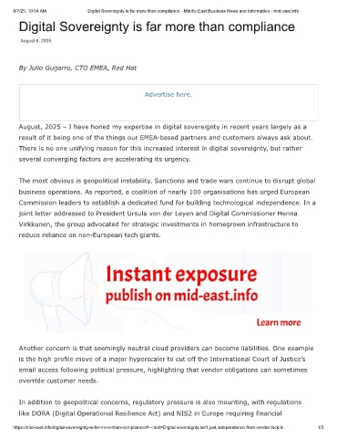 8/7/25, 10:54 AM Digital Sovereignty is far more than compliance - Middle East Business News and Information - mid-east.info