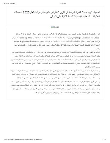 تﺎھ دﯾر" ﺔﻛرﺷ تﻧﻠﻋأ" (Red Hat)، ﺔﻛرﺷ لﺑﻗ نﻣ "ةدﺋار ﺔﻛرﺷ" ـﻛ ﺎﮭﻔﯾﻧﺻﺗ نﻋ ،ردﺻﻣﻟا ﺔﺣوﺗﻔﻣ لوﻠﺣﻠﻟ دﺋارﻟا ﻲﻣﻟﺎﻌﻟا دوزﻣﻟا