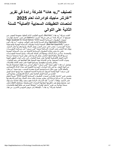 ﺖﻧارداﻮﻛ ﻚﯿﺟﺎﻣ" ﺮﻳﺮﻘﺗ ﻲﻓ (Gartner) "ﺮﻨﺗرﺎﻏ" ﺔﻛﺮﺷ ﻞﺒﻗ ﻦﻣ "ةﺪﺋار ﺔﻛﺮﺷ" ـﻛ ﺎﮫﻔﯿﻨﺼﺗ