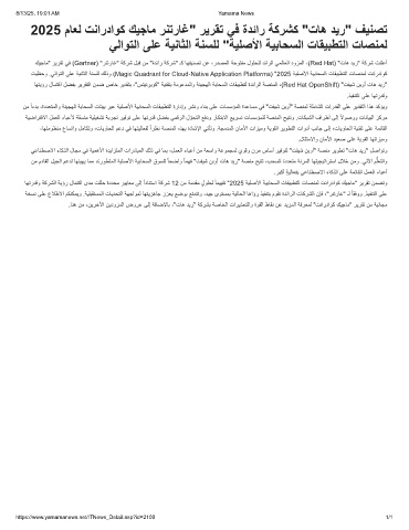 كﯾﺟﺎﻣ" رﯾرﻘﺗ ﻲﻓ (Gartner) "رﻧﺗرﺎﻏ" ﺔﻛرﺷ لﺑﻗ نﻣ "ةدﺋار ﺔﻛرﺷ" ـﻛ ﺎﮭﻔﯾﻧﺻﺗ نﻋ ،ردﺻﻣﻟا ﺔﺣوﺗﻔﻣ لوﻠﺣﻠﻟ دﺋارﻟا ﻲﻣﻟﺎﻌﻟا دوزﻣﻟا ،(Red Hat) "تﺎھ دﯾر" ﺔﻛرﺷ تﻧﻠﻋأ