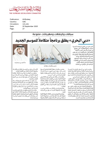 Publication: Al Khaleej Country: UAE Circulation: 121,141 Date: 24 September 2025 Page: 27
