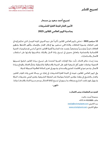 ي ﻓ ﻪﻴﻟإ ﻢ ِﻜَﺘﺤ ﻧ يﺬﻟا ﻞﺼﻴﻔﻟا ﻪﻧﻮﻜﻟ يﻮﻴﺤﻟا هرود ى�ﻋ ًاﺪﻴﻛﺄﺗ نﻮﻧﺎﻘﻠﻟ ﻲﻤﻟﺎﻌﻟا مﻮﻴﻟﺎ ﺑ ﻲﻔﺘﺤﻧ - 2025 ﺮﺒﻤﺘﺒﺳ 12