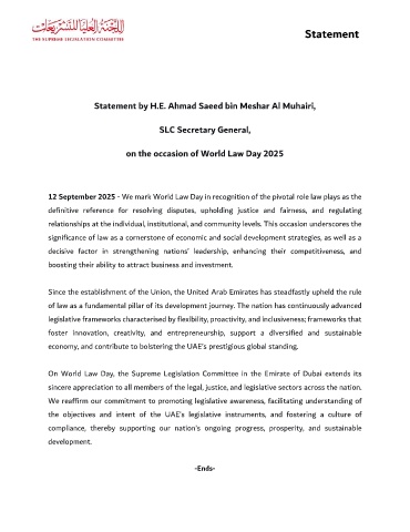 On World Law Day, the Supreme Legislation Committee in the Emirate of Dubai extends its