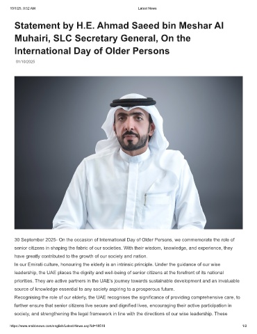 leadership, the UAE places the dignity and well-being of senior citizens at the forefront of its national