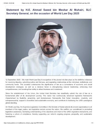 9/16/25, 10:00 AM Statement by H.E. Ahmad Saeed bin Meshar Al Muhairi, SLC Secretary General, on the occasion of World Law Day 2025