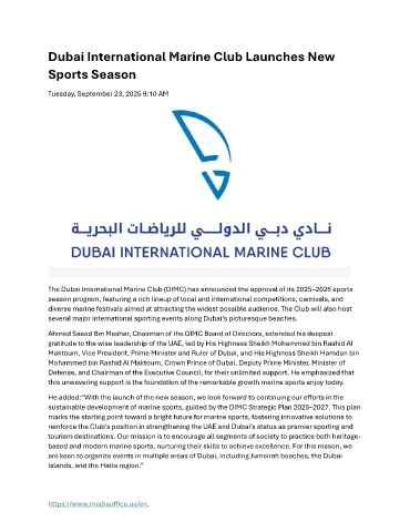 The Dubai International Marine Club (DIMC) has announced the approval of its 2025–2026 sports