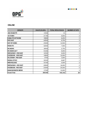WEBSITE VALUE (IN AED) TOTAL MEDIA REACH NUMBER OF HITS