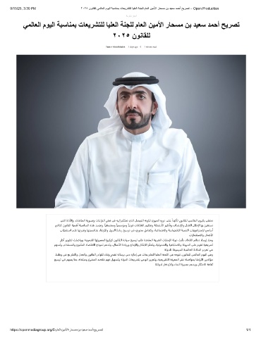 9/15/25, 3:30 PM ٢٠٢٥ نوﻧﺎﻘﻠﻟ ﻲﻣﻟﺎﻌﻟا موﯾﻟا ﺔﺑﺳﺎﻧﻣﺑ تﺎﻌﯾرﺷﺗﻠﻟ ﺎﯾﻠﻌﻟا ﺔﻧﺟﻠﻟ مﺎﻌﻟا نﯾﻣﻷا رﺎﺣﺳﻣ نﺑ دﯾﻌﺳ دﻣﺣأ ﺢﯾرﺻﺗ – Open Production