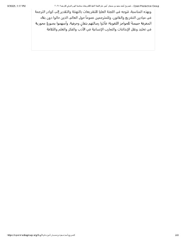 9/30/25, 1:17 PM ٢٠٢٥ ﺔﻣﺟرﺗﻠﻟ ﻲﻟودﻟا موﯾﻟا ﺔﺑﺳﺎﻧﻣﺑ تﺎﻌﯾرﺷﺗﻠﻟ ﺎﯾﻠﻌﻟا ﺔﻧﺟﻠﻟا مﺎﻋ نﯾﻣأ رﺎﺣﺳﻣ نﺑ دﯾﻌﺳ دﻣﺣأ ﺢﯾرﺻﺗ – Open Production Group
