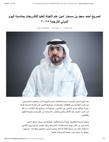 9/30/25, 1:17 PM ٢٠٢٥ ﺔﻣﺟرﺗﻠﻟ ﻲﻟودﻟا موﯾﻟا ﺔﺑﺳﺎﻧﻣﺑ تﺎﻌﯾرﺷﺗﻠﻟ ﺎﯾﻠﻌﻟا ﺔﻧﺟﻠﻟا مﺎﻋ نﯾﻣأ رﺎﺣﺳﻣ نﺑ دﯾﻌﺳ دﻣﺣأ ﺢﯾرﺻﺗ – Open Production Group