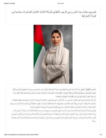 27 ﻲﺗارﺎﻣﻹا ﻊﻣﺗﺟﻣﻟا ءﺎﻧﺑ ﻲﻓ يروﺣﻣﻟا ﺎھرودﺑ ًازازﺗﻋا ﺔﯾﺗارﺎﻣﻹا ةأرﻣﻟا موﯾﺑ ةدﺣﺗﻣﻟا ﺔﯾﺑرﻌﻟا تارﺎﻣﻹا ﺔﻟود ﻲﻔﺗﺣﺗ" :2025 سطﺳﻏأ