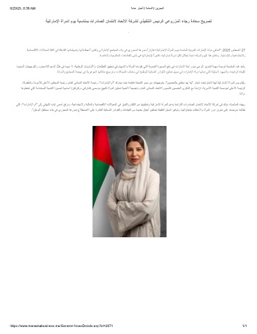 ﺔﯾدﺎﺻﺗﻗﻻا تﻻﺎﺟﻣﻟا ﺔﻓﺎﻛ ﻲﻓ ﺔﻠﻋﺎﻔﻟا ﺎﮭﺗﺎﻣﺎﮭﺳإو ﺎﮭﺗاءﺎطﻌﻟ ًارﯾدﻘﺗو ﻲﺗارﺎﻣﻹا ﻊﻣﺗﺟﻣﻟا ءﺎﻧﺑ ﻲﻓ يروﺣﻣﻟا ﺎھرودﺑ ًازازﺗﻋا ﺔﯾﺗارﺎﻣﻹا ةأرﻣﻟا موﯾﺑ ةدﺣﺗﻣﻟا ﺔﯾﺑرﻌﻟا تارﺎﻣﻹا ﺔﻟود ﻲﻔﺗﺣﺗ" :2025 سطﺳﻏأ 27