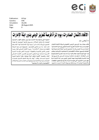 Publication: Al Fajr Country: UAE Circulation: 34,596 Date: 28 August 2025 Page: 9