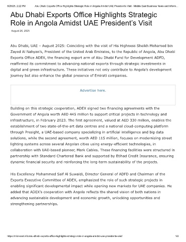 8/28/25, 2:22 PM  Abu Dhabi Exports Office Highlights Strategic Role in Angola Amidst UAE President’s Visit - Middle East Business News and Inform…