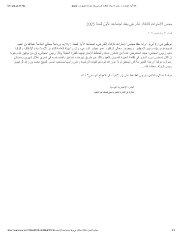 ﺦﯿﺸﻟا ﻦﺑ ﷲﺪﺒﻋ ﺔﻣﻼﻌﻟا ﻲﻟﺎﻌﻣ ﺔﺳﺎﺋﺮﺑ ،م2025 ﺔﻨﺴﻟ لوﻷا ﮫﻋﺎﻤﺘﺟا ،ﻲﻋﺮﺸﻟا ءﺎﺘﻓﻺﻟ تارﺎﻣﻹا ﺲﻠﺠﻣ ﺪﻘﻋ /ماو/ ﻞﯾﺮﺑأ 12 ﻲﻓ ﻲﺒظﻮﺑأ