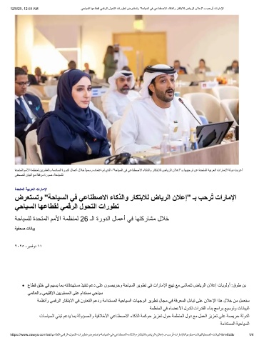 12/8/25, 12:55 AM ﻲﺣﺎﯾﺳﻟا ﺎﮭﻋﺎطﻘﻟ ﻲﻣﻗرﻟا لوﺣﺗﻟا تاروطﺗ ضرﻌﺗﺳﺗو "ﺔﺣﺎﯾﺳﻟا ﻲﻓ ﻲﻋﺎﻧطﺻﻻا ءﺎﻛذﻟاو رﺎﻛﺗﺑﻼﻟ ضﺎﯾرﻟا نﻼﻋإ" ـﺑ بﺣرُﺗ تارﺎﻣﻹا