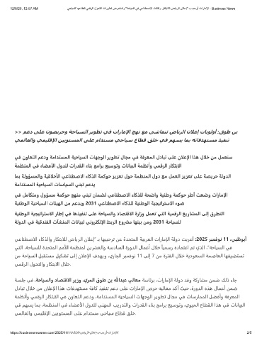 12/8/25, 12:57 AM ﻲﺣﺎﯾﺳﻟا ﺎﮭﻋﺎطﻘﻟ ﻲﻣﻗرﻟا لوﺣﺗﻟا تاروطﺗ ضرﻌﺗﺳﺗو "ﺔﺣﺎﯾﺳﻟا ﻲﻓ ﻲﻋﺎﻧطﺻﻻا ءﺎﻛذﻟاو رﺎﻛﺗﺑﻼﻟ ضﺎﯾرﻟا نﻼﻋإ" ـﺑ بﺣرُﺗ تارﺎﻣﻹا - Business News