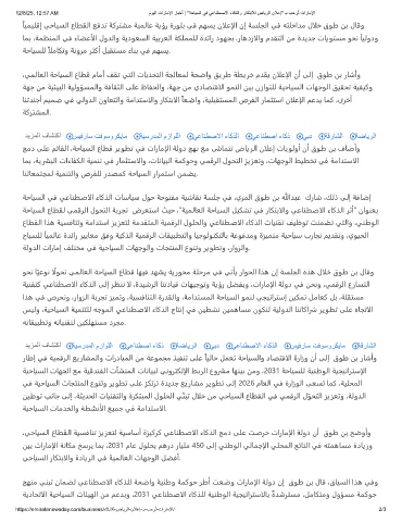 ًﺎﻴﻤﻴﻠﻗإ ﻲﺣﺎﻴﺴﻟا عﺎﻄﻘﻟا ﻊﻓﺪﺗ ﺔﻛﺮﺘﺸﻣ ﺔﻴﻤﻟﺎﻋ ﺔﻳؤر ةرﻮﻠﺑ ﻲﻓ ﻢﻬﺴﻳ نالﻋإلا نإ ﺔﺴﻠﺠﻟا ﻲﻓ ﻪﺘﻠﺧاﺪﻣ لالﺧ قﻮﻃ ﻦﺑ لﺎﻗو