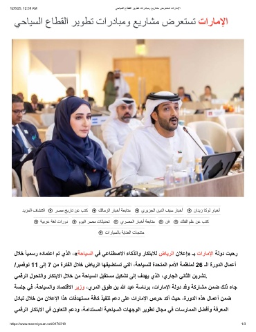 12/8/25, 12:59 AM ﻲﺣﺎﯾﺳﻟا عﺎطﻘﻟا رﯾوطﺗ تاردﺎﺑﻣو ﻊﯾرﺎﺷﻣ ضرﻌﺗﺳﺗ تارﺎﻣﻹا