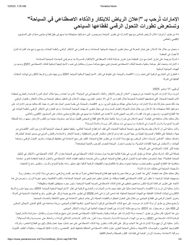"ﺔﺣﺎﯾﺳﻟا ﻲﻓ ﻲﻋﺎﻧطﺻﻻا ءﺎﻛذﻟاو رﺎﻛﺗﺑﻼﻟ ضﺎﯾرﻟا نﻼﻋإ" ـﺑ بﺣرُﺗ تارﺎﻣﻹا