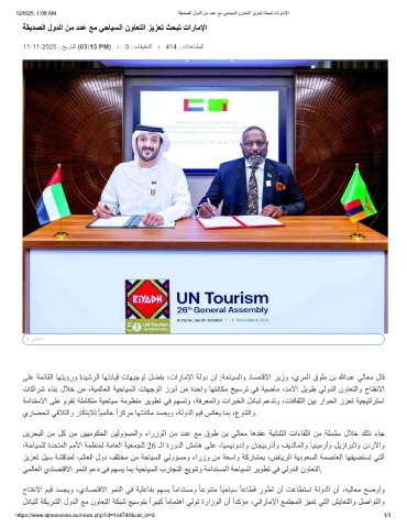 12/8/25, 1:08 AM ﺔﻘﯾدﺻﻟا لودﻟا نﻣ ددﻋ ﻊﻣ ﻲﺣﺎﯾﺳﻟا نوﺎﻌﺗﻟا زﯾزﻌﺗ ثﺣﺑﺗ تارﺎﻣﻹا