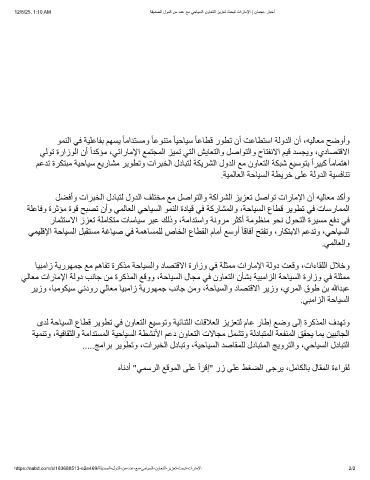 ﻲﻟﺎﻌﻣ تارﺎﻣﻹا ﺔﻟود ﺐﻧﺎﺟ ﻦﻣ ةﺮﻛﺬﻤﻟا ﻊﻗوو ،ﺔﺣﺎﯿﺴﻟا لﺎﺠﻣ ﻲﻓ نوﺎﻌﺘﻟا نﺄﺸﺑ ﺔﯿﺒﻣاﺰﻟا ﺔﺣﺎﯿﺴﻟا ةرازو ﻲﻓ ﺔﻠﺜﻤﻣ