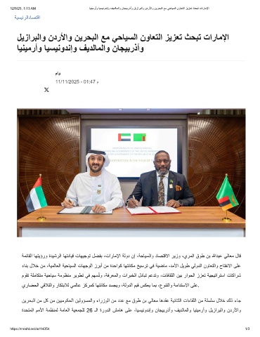 12/8/25, 1:13 AM ﺎﯾﻧﯾﻣرأو ﺎﯾﺳﯾﻧودﻧإو فﯾدﻟﺎﻣﻟاو نﺎﺟﯾﺑرذأو لﯾزارﺑﻟاو ندرﻷاو نﯾرﺣﺑﻟا ﻊﻣ ﻲﺣﺎﯾﺳﻟا نوﺎﻌﺗﻟا زﯾزﻌﺗ ثﺣﺑﺗ تارﺎﻣﻹا