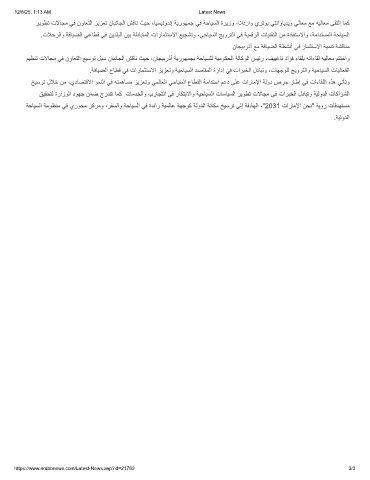 ﺔﺣﺎﯾﺳﻟا ﺔﻣوظﻧﻣ ﻲﻓ يروﺣﻣ زﻛرﻣو ،رﻔﺳﻟاو ﺔﺣﺎﯾﺳﻟا ﻲﻓ ةدﺋار ﺔﯾﻣﻟﺎﻋ ﺔﮭﺟوﻛ ﺔﻟودﻟا ﺔﻧﺎﻛﻣ ﺦﯾﺳرﺗ ﻰﻟإ ﺔﻓدﺎﮭﻟا ،"2031 تارﺎﻣﻹا نﺣﻧ" ﺔﯾؤر تﺎﻓدﮭﺗﺳﻣ