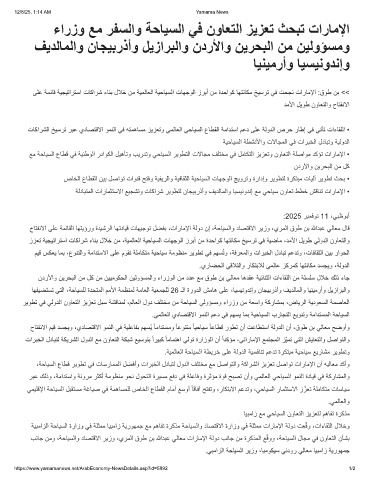 ،ﺔﺣﺎﯾﺳﻟا عﺎطﻗ رﯾوطﺗ ﻲﻓ تﺎﺳرﺎﻣﻣﻟا لﺿﻓأو تارﺑﺧﻟا لدﺎﺑﺗﻟ لودﻟا فﻠﺗﺧﻣ ﻊﻣ لﺻاوﺗﻟاو ﺔﻛارﺷﻟا زﯾزﻌﺗ لﺻاوﺗ تارﺎﻣﻹا نأ ﮫﯾﻟﺎﻌﻣ دﻛأو