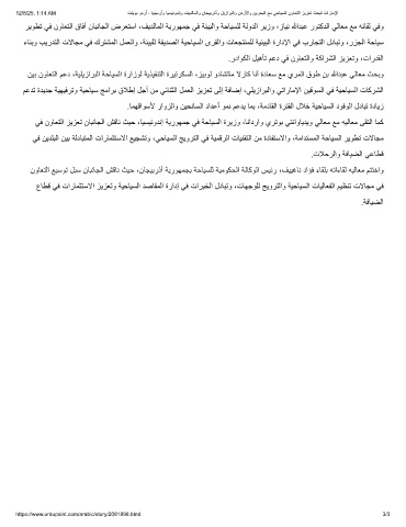رﯾوطﺗ ﻲﻓ نوﺎﻌﺗﻟا قﺎﻓآ نﺎﺑﻧﺎﺟﻟا ضرﻌﺗﺳا ،فﯾدﻟﺎﻣﻟا ﺔﯾروﮭﻣﺟ ﻲﻓ ﺔﺋﯾﺑﻟاو ﺔﺣﺎﯾﺳﻠﻟ ﺔﻟودﻟا رﯾزو ،زﺎﯾﻧ ﷲدﺑﻋ روﺗﻛدﻟا ﻲﻟﺎﻌﻣ ﻊﻣ ﮫﺋﺎﻘﻟ ﻲﻓو