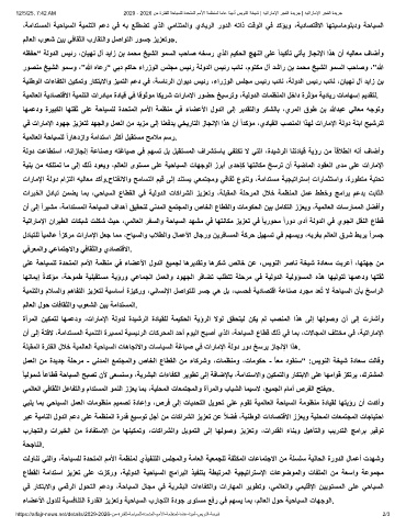 ،ﺔﻣادﺗﺳﻣﻟا ﺔﯾﺣﺎﯾﺳﻟا ﺔﯾﻣﻧﺗﻟا مﻋد ﻲﻓ ﮫﺑ ﻊﻠطﺿﺗ يذﻟا ﻲﻣﺎﻧﺗﻣﻟاو يدﺎﯾرﻟا رودﻟا ﮫﺗاذ تﻗوﻟا ﻲﻓ دﻛؤﯾو ،ﺔﯾدﺎﺻﺗﻗﻻا ﺎﮭﺗﯾﺳﺎﻣوﻠﺑدو ﺔﺣﺎﯾﺳﻟا