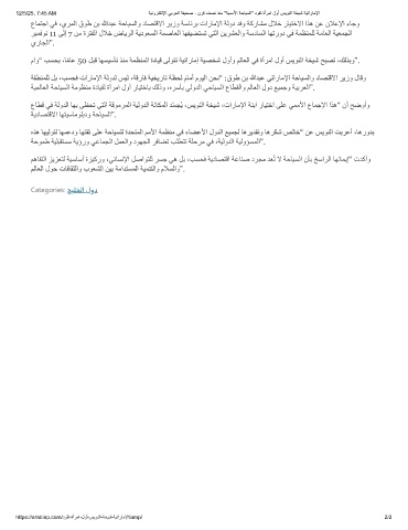 عﺎﻄﻗ ﻲﻓ ﺔﻟوﺪﻟا ﺎﮭﺑ ﻰﻈﺤﺗ ﻲﺘﻟا ﺔﻗﻮﻣﺮﻤﻟا ﺔﯿﻟوﺪﻟا ﺔﻧﺎﻜﻤﻟا ﺪّﺴﺠُﯾ ،ﺲﯾﻮﻨﻟا ﺔﺨﯿﺷ ،تارﺎﻣﻹا ﺔﻨﺑا رﺎﯿﺘﺧا ﻰﻠﻋ ﻲﻤﻣﻷا عﺎﻤﺟﻹا اﺬھ“ نأ ﺢﺿوأو
