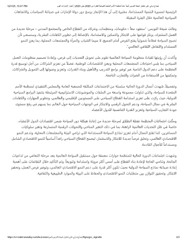 ،ءﺎﻀﻋألا لوﺪﻟا تادﺎﺼﺘﻗا ﻦﻤﺿ ﺔﺣﺎﻴﺴﻟا رود ﺔﻠﻜﻴﻫ ةدﺎﻋإ ﻦﻣ ةﺪﻳﺪﺟ ﺔﻠﺣﺮﻤﻟ قالﻄﻧا ﺔﻄﻘﻧ ﺔﻤﻈﻨﻤﻟا تﺎﻋﺎﻤﺘﺟا ﺖﻠّﺜﻣو
