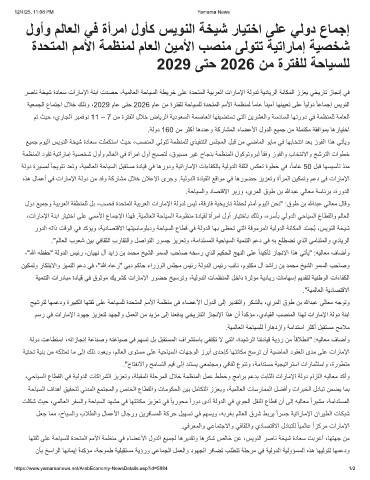 ﺎﮭﺗﻘﺛ ﻰﻠﻋ ﺔﺣﺎﯾﺳﻠﻟ ةدﺣﺗﻣﻟا مﻣﻷا ﺔﻣظﻧﻣ ﻲﻓ ءﺎﺿﻋﻷا لودﻟا ﻊﯾﻣﺟﻟ ﺎھرﯾدﻘﺗو ﺎھرﻛﺷ صﻟﺎﺧ نﻋ ،سﯾوﻧﻟا رﺻﺎﻧ ﺔﺧﯾﺷ ةدﺎﻌﺳ تﺑرﻋأ ،ﺎﮭﺗﮭﺟ نﻣ
