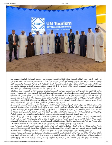 ﺔﻨﺑا تﺪﺼﺣ ،ﺔﯿﻤﻟﺎﻌﻟا ﺔﺣﺎﯿﺴﻟا ﺔﻄﻳﺮﺧ ﻰﻠﻋ ةﺪﺤﺘﻤﻟا ﺔﯿﺑﺮﻌﻟا تارﺎﻣﻹا ﺔﻟوﺪﻟ ﺔﻳدﺎﻳﺮﻟا ﺔﻧﺎﻜﻤﻟا زﺰﻌﻳ ﻲﺨﻳرﺎﺗ زﺎﺠﻧإ ﻲﻓ