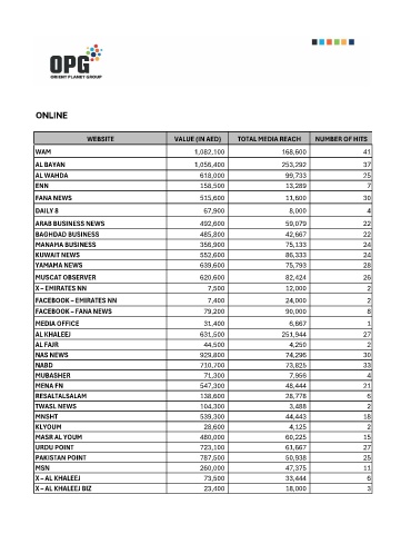 WEBSITE VALUE (IN AED) TOTAL MEDIA REACH NUMBER OF HITS