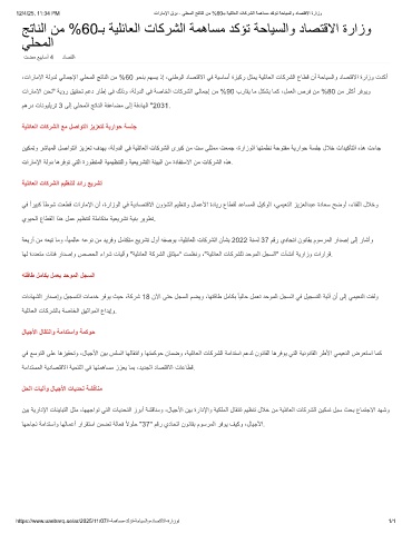 12/4/25, 11:34 PM تارﺎﻣﻹا قرﺑ - ﻲﻠﺣﻣﻟا ﺞﺗﺎﻧﻟا نﻣ %60ـﺑ ﺔﯾﻠﺋﺎﻌﻟا تﺎﻛرﺷﻟا ﺔﻣھﺎﺳﻣ دﻛؤﺗ ﺔﺣﺎﯾﺳﻟاو دﺎﺻﺗﻗﻻا ةرازو