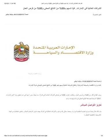 12/4/25, 11:34 PM لﻣﻌﻟا صرﻓ نﻣ %80و ﻲﻠﺣﻣﻟا ﺞﺗﺎﻧﻟا نﻣ %60ـﺑ مﮭﺳﺗ ةوﻗ ..تارﺎﻣﻹا ﻲﻓ ﺔﯾﻠﺋﺎﻌﻟا تﺎﻛرﺷﻟا