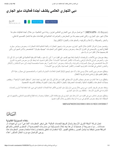 قﺮﺸﻟا ﺖﯾﺮﺠﺘﻧا ضﺮﻌﻣ ﻦﻣ ﻞﻛ ﺪﻘﻌﻨﯾ ﺎﻤﻛ ،ﺎﮭﺴﻔﻧ ةﺮﺘﻔﻟا لﻼﺧ "تﺎﺴﺑﺎﻛ" ﺔﯿﻋﺎﻨﺼﻟا رﺎﻤﻗﻷا تﻻﺎﺼﺗاو ﻲﻤﻗﺮﻟا مﻼﻋﻺﻟ ﻲﻟوﺪﻟا ضﺮﻌﻤﻟاو ،ﻮﯾﺎﻣ