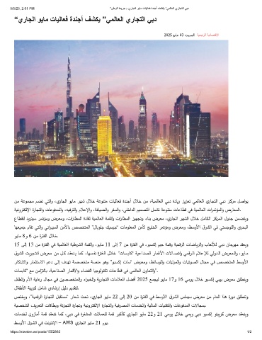 نﻣ ﺔﻋومجﻣ مضﺗ ﻲتﻟاو ،ي رﺎجﻟا وﯾﺎﻣ رﻬﺷ لﻼﺧ ﺔﻋونتﻣ تﺎيﻟﺎﻌﻓ ةدنﺟأ لﻼﺧ نﻣ ،ﺔيمﻟﺎﻌﻟا ﻲﺑد ةدﺎير زيزﻌﺗ ﻲمﻟﺎﻌﻟا ي رﺎجتﻟا ﻲﺑد زكرﻣ ﻞﺻاوﯾ